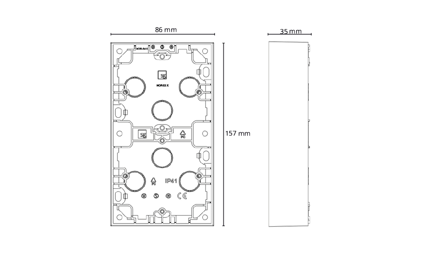 Back box Black 2X, Article code: 78511, EAN: 7021987851112, IP41, Protection: IP Class: IP41, Materials and finish: Housing: Polycarbonat (PC), Colour: Black (RAL 9004), Halogen free: Yes, Mounting/Connection: Mounting: Surface, Indoor, Dimensions: Length (mm) L: 86, Width (mm) W: 157, Height (mm) H: 35, Weight (kg) gross/net: 0.093 / 0.073, Packaging: Packaging dimensions (mm): 86 x 157 x 35, Number per pack: 6