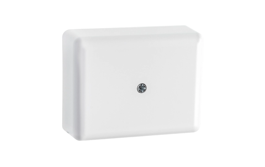 Junction box for wall mounting, IP20. Supplied with 6 removable screw terminals for up to 2x6mm². Recesses in corners and sides of the box. Option for 16mm pipe entry at the bottom. Manufactured in colour-fast polycarbonate.