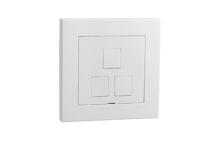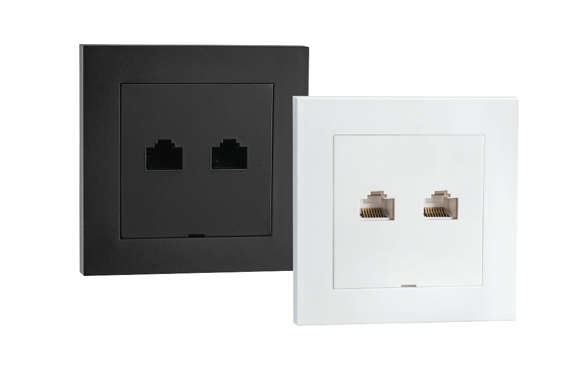 Modularuttak 3x keystone og datakommunikasjonuttak 2x8 uskjermet Cat6 i stilrent design. Disse kan også benyttes i våre flerhullsrammer eller påveggskapper for utenpåliggende installasjon.