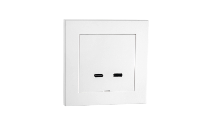 USB charger 3A with 2 outlets (1xUSB A and 1xUSB C). Fits in standard wall box or back box and can be used in frames together with other recessed equipment.
