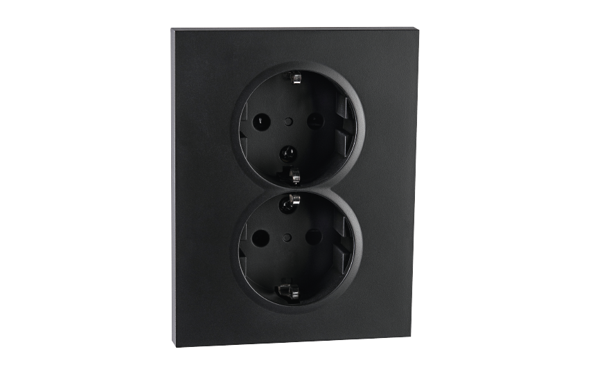 Outlet recessed Black Double Grounded 1.5 Box .