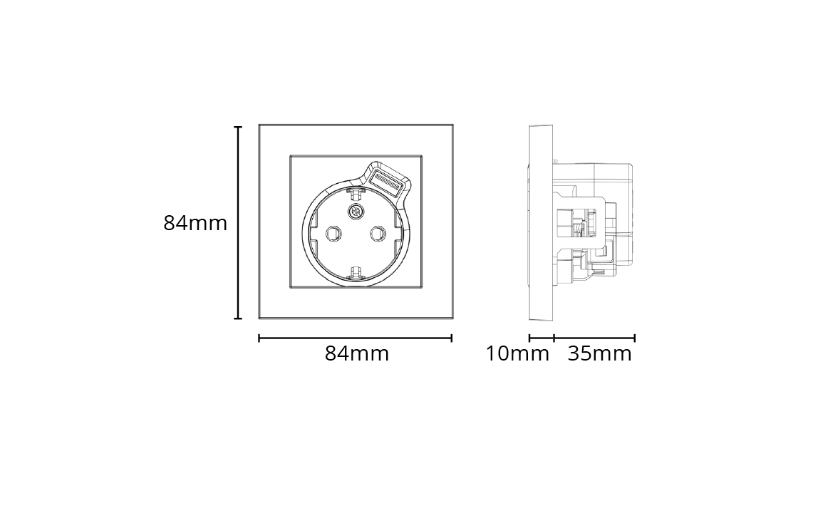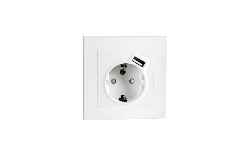 Outlet recessed White Single Grounded + USB-A Charging Unit 2,4A