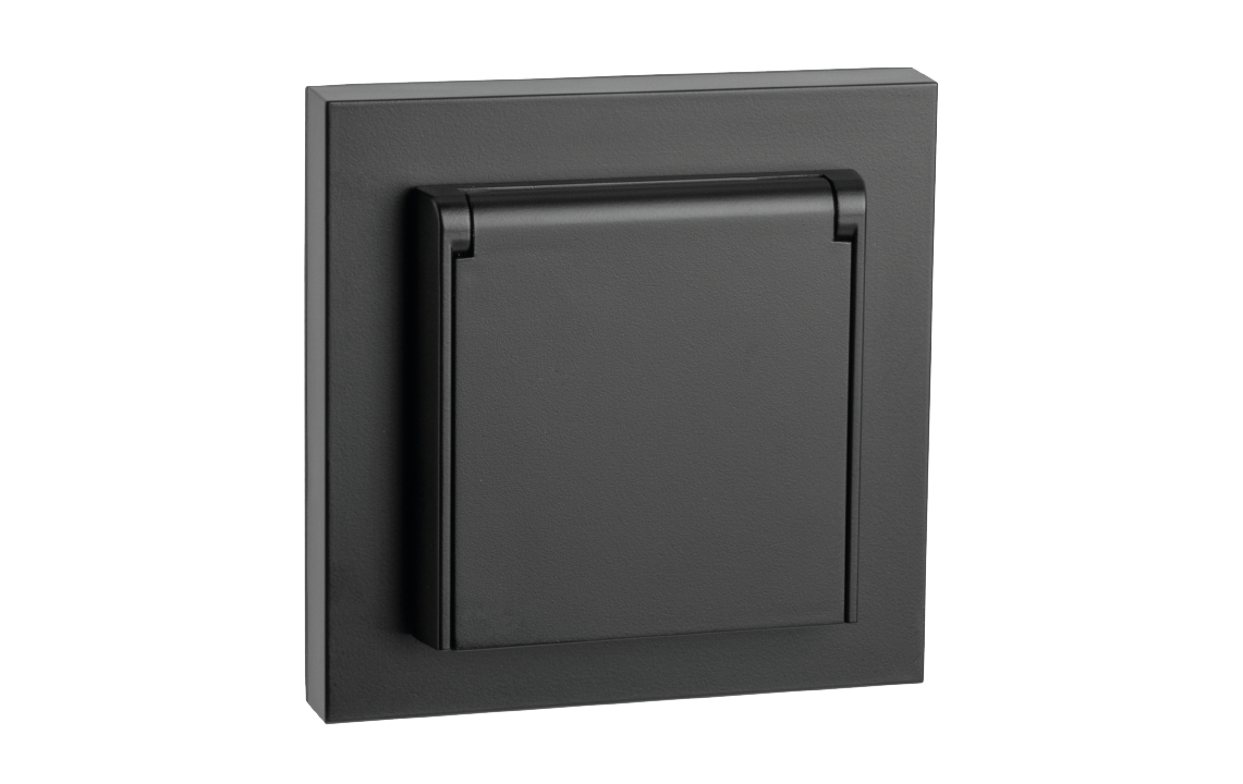 Outlet flush mounted single Black IP44 with Lid