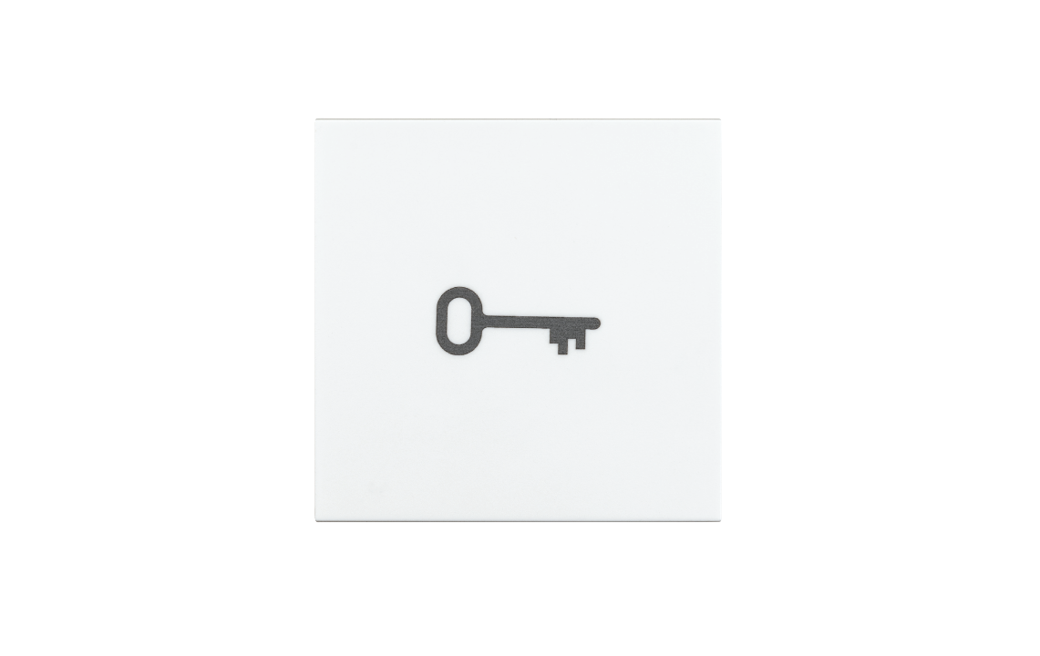 Switch button symbol White Key, Article code: 76950, EAN: 7021987695013, IP21, Protection: IP Class: IP21, Materials and finish: Housing: Polycarbonat (PC), Colour: White (RAL 9003), Halogen free: Yes, Mounting/Connection: Mounting: Indoor, Dimensions: Length (mm) L: 56, Width (mm) W: 56, Height (mm) H: 13, Weight (kg) gross/net: 0.0125 / 0.0095, Packaging: Packaging dimensions (mm): 56 x 56 x 13, Number per pack: 20