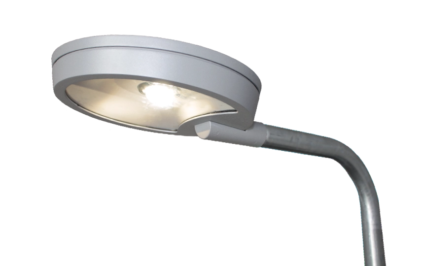 Design: Christian Hvidt. Light for mounting on mast, IP65-rated. Luminaire body made of die-cast aluminium, powder-coated in black or grey. Reflector made of aluminium, powder-coated white. Optics are particularly well suited to giving a direct light distribution due to the tempered glass front. Complete with LED driver for operation of LED light sources mounted to component rail pre-mounted with six-metre connection cable. Lamp head prepared for mounting at 60 mm. Electrical rating class II. IK09. CircLED is based on the latest LED technology and optics for a long-lasting solution for streets and small roads, public areas and paths. CircLED is available as a single lens or a multi-lens version. Both combine energy savings, durability and precise light distribution and are optimal solutions for retrofitting of old mercury or sodium lamps.