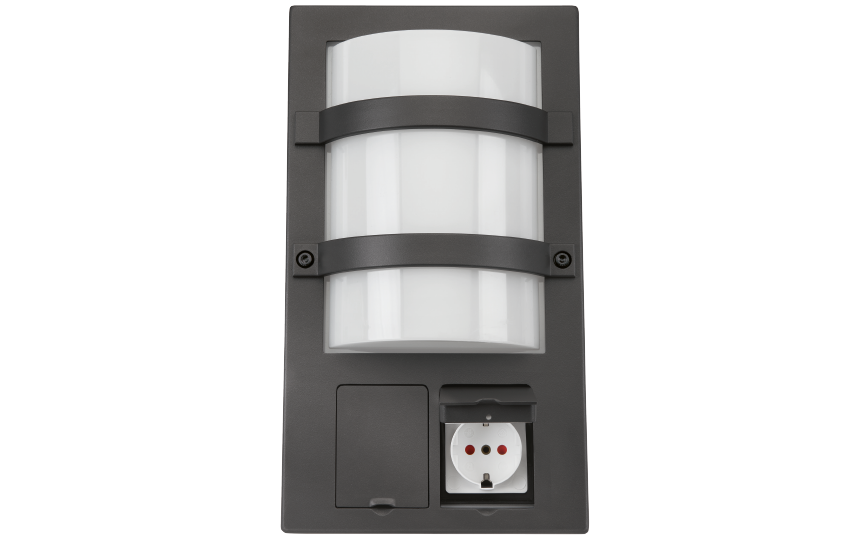 Design: Hallvard Jakobsen. Impact-resistant wall luminaire with decorative protective brackets for outdoor use. The Trio Socket features two convenient sockets, perfect for patio heaters on the porch, high pressure washers in the carport - and anywhere else you’d wish you had an extra outlet.Easy connection with quick-release terminals and two I/O cable ports. Both concealed and visible cabling are possible.