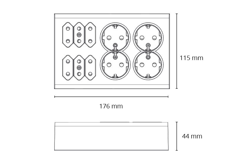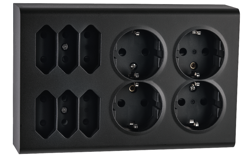 Outlet surface Black 4+6 Euro Grounded