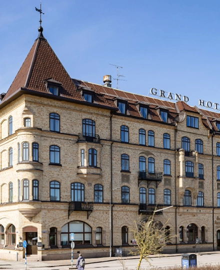 The Grand Hotel has been a natural meeting place in Halmstad since 1905. The four-star hotel consists of four floors, 114 rooms and five conference rooms, and is conveniently located within walking distance of the city centre. In February 2024, the hotel changed owners when it was acquired by the Room Republic hotel family.