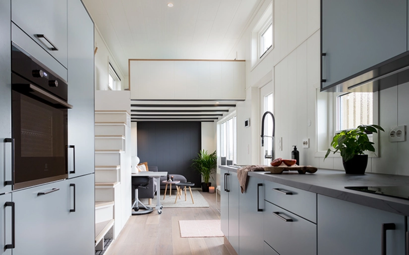 Mari wanted a home where she could manage her own time and feel more free. A home without too many costs and obligations. The result was Norway's largest mini house on wheels. The house is a full 40m2 over 1.5 floors, ultra-modern, mobile and largely self-sufficient.