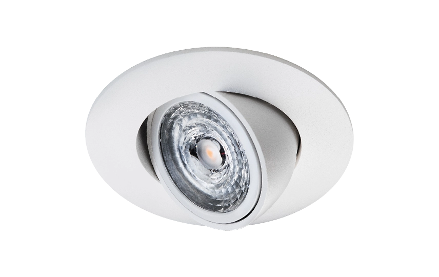 Downlight til indendørs brug. Unik Vip 45 grader, med minimalt lystab grundet at den vipper i den sidste 1/3 af armatur skålen. Udskiftelig dæmpbar LED GU10 pære (inkl). Udført i trykstøbt pulverlakeret aluminum eller børstet stål. Ø83 hulmål.