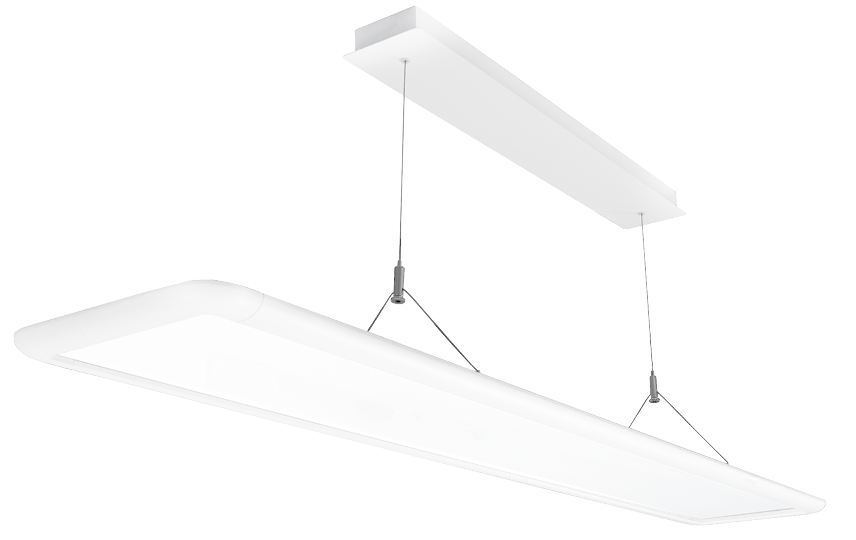 Energieffektivt LED-panel med slank profil som gir et moderne utseende der den svever i rommet. Armaturen er utført i pulverlakkert aluminium i matt hvit. Prismatisk diffuser gir et blendningsfritt lys, og den har både indirekte og direkte lys. Ideell til kontorer og møterom.Takbeslaget kan monteres utenpåliggende med skjult eller åpen kabling. Det kan også enkelt legges inn i en vanlig 60x60 T-himling. Tilkobling med hurtigklemmer for enkel viderekobling. Fra takbeslaget går lavvolt strøm i wirene, slik at det er blir en meget elegant løsning uten skjemmende strømkabler.
