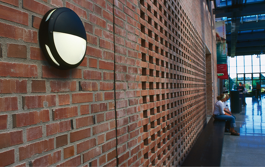Design: Svein Knudsen / Andrew Smith. Runde armaturer som kan monteres i tak og på vegg både inne- og utendørs. Enkel montering med hurtigklemmer, to inn-/ utganger for kabler, med mulighet for både skjult og synlig kabling.