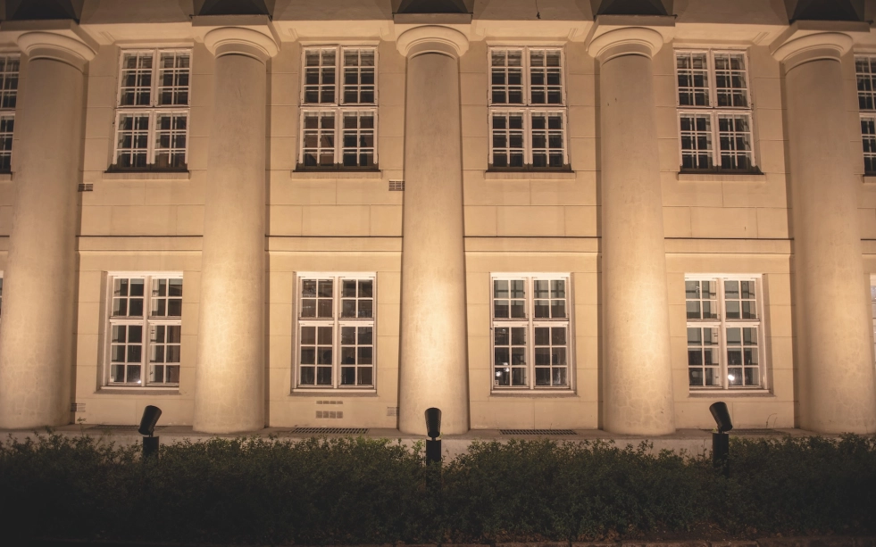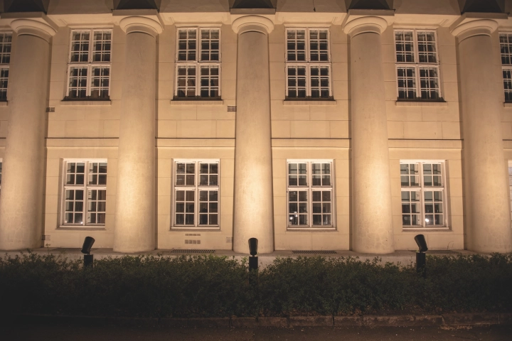 Resultatet er en diskret og effektiv belysning som løfter fram Oslo Børs klassiske arkitektur.