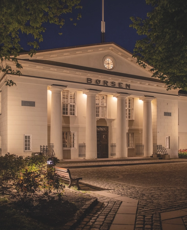Oslo Børs er Norges ledende markedsplass for aksjer og verdipapirer, og bygget fra 1828 er et kjent landemerke midt i Oslo sentrum. For å bevare det historiske uttrykket og samtidig skape et stemningsfullt miljø rundt eiendommen,