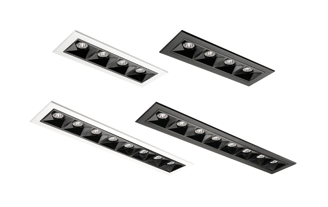 Inspire R; infälld linjär downlight med exklusiv minimalistisk känsla. Låg bländningsrisk tack vare de förhöjda ljuspunkterna omringade av cylindriska reflektorer och stjärnformat vinklade avbländningsytor i mattsvart. Armaturen får ett harmoniskt flimmerfritt ljus med väldefinierat ljusmönster. Inspire R passar i både privat som offentlig miljö som korridorer, väntrum, hall och kök. Kommer komplett med driver, snabbplint för vidarekoppling och med dragavlastning för kabel eller flexslang. Justerbart lumenvärde via DIP-switch på drivdonet.