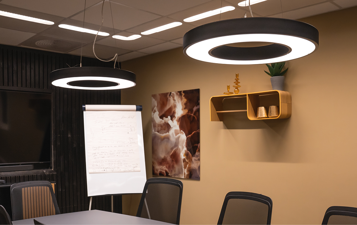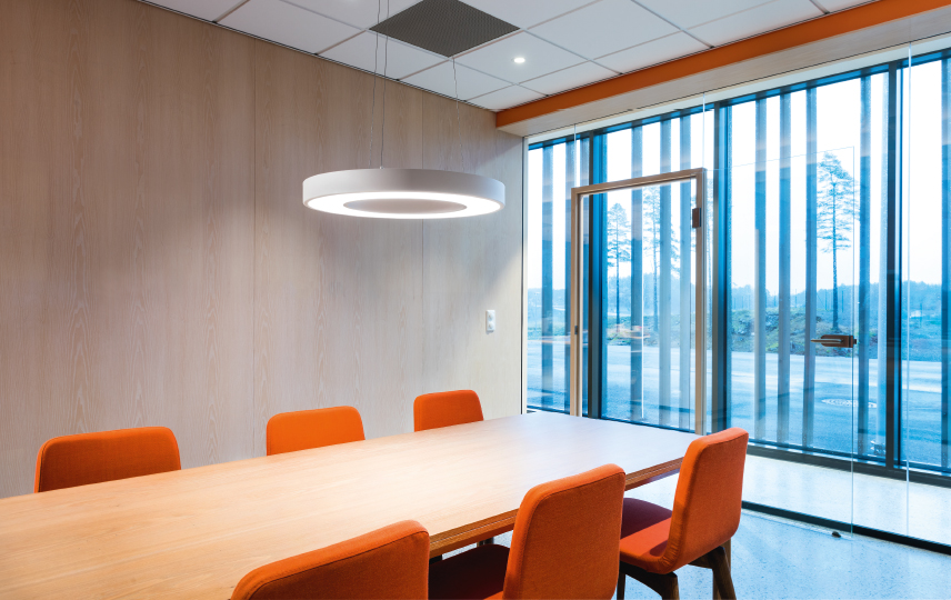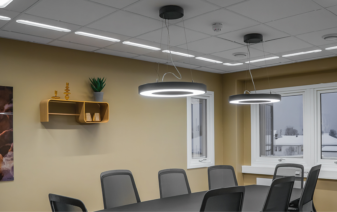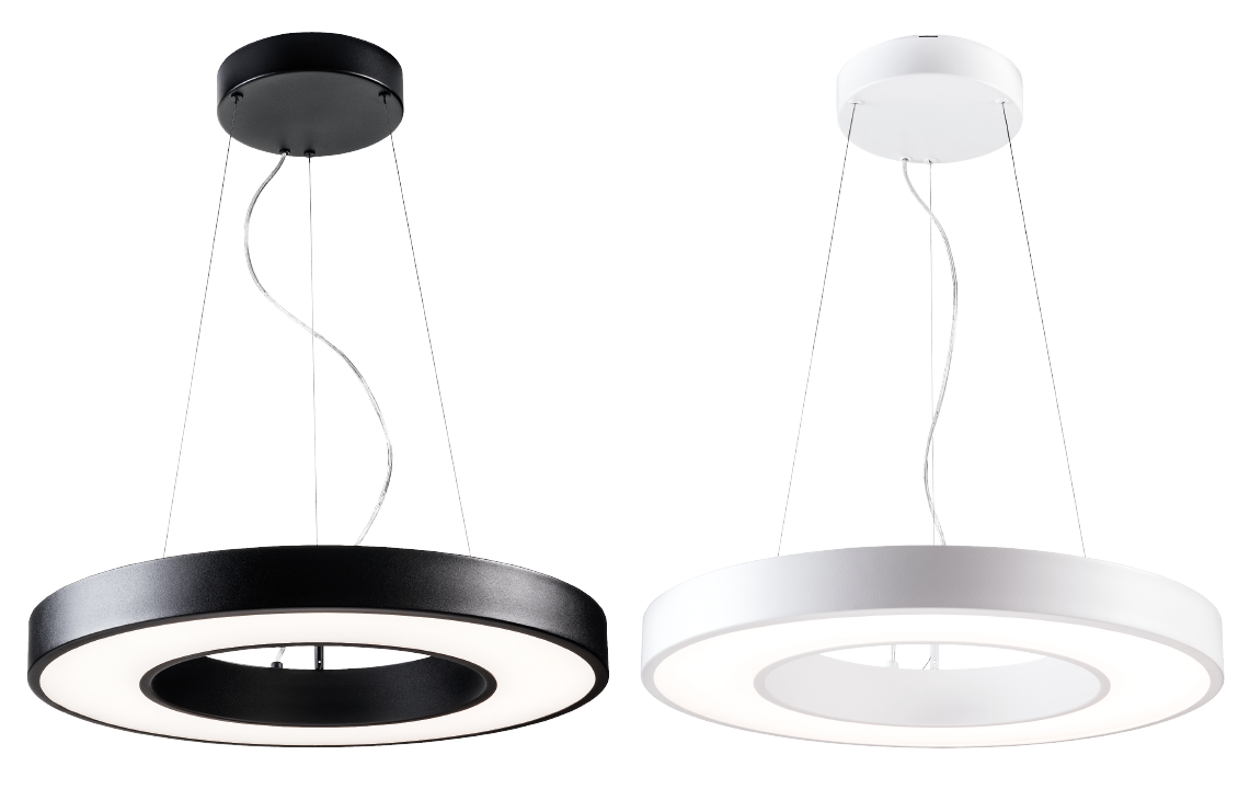 Circulus Maxi är upphängd i tre justerbara wires utan synliga kablar och beskriver en lysande cirkel som hänger fritt. En visuellt tilltalande design som levererar en jämn fin belysning och uppfyller Hea 01 för flimmerfritt ljus. Passar exempelvis över konferensbord och större utrymmen. Tillverkad av pulverlackerad stål med opaliserad avskärmning. Enkel montering med medföljande takkopp som kan monteras mot alla vanliga takuttag/-dosor. Möjlighet för utanpåliggande kabel och snabbmontage för parallellkoppling. Justerbart lumenvärde via DIP-switch på drivern.