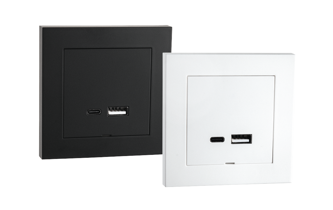 USB-laddare passar i standardväggdosa eller förhöjningsram och kan användas i ramar tillsammans med annat infällt material.Tillverkade av halogenfritt polykarbonat som ger den vita färgen bättre färgbeständighet. Den svarta har genomfärgat svart material, vilket gör den tålig mot repor och märken.