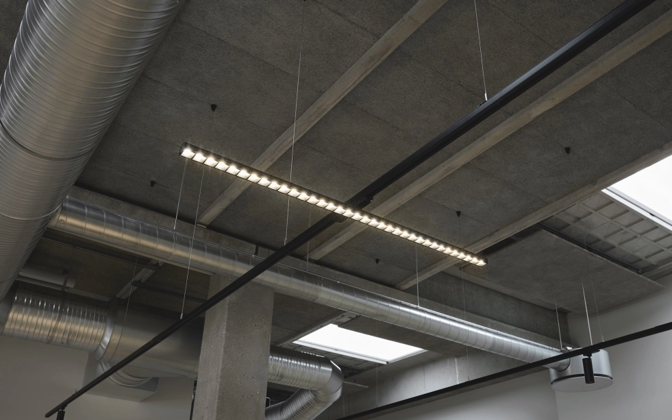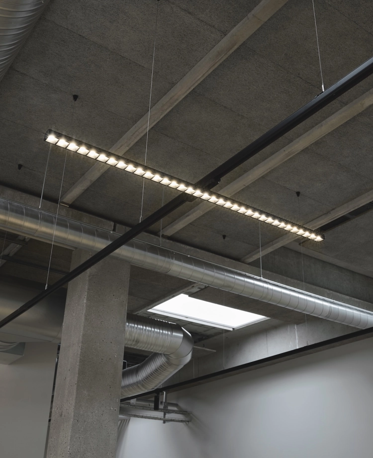 Belysningen är utformad för att minimera bländning och skapa en bekväm och funktionell ljusmiljö som stöder både produktivitet och välbefinnande. Samtidigt respekterar lösningen hallens ursprungliga arkitektur och ger den ett modernt och rent utseende.