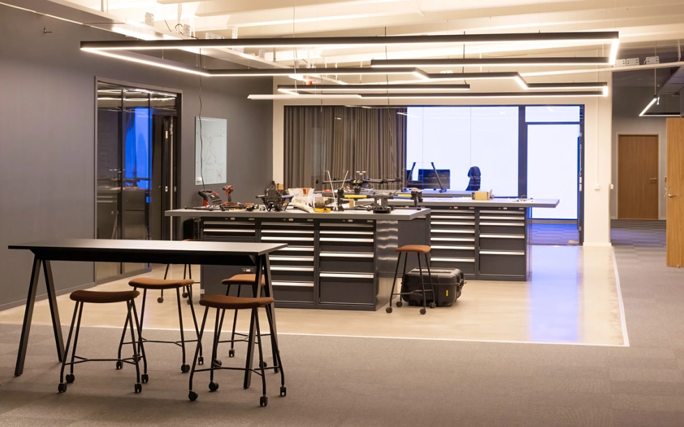 - All belysning i lokalerna kommer från SG och vi är mycket nöjda med slutresultatet. Belysningen ger en modern och industriell känsla i det nya labbet, säger Mikael Bergsten.